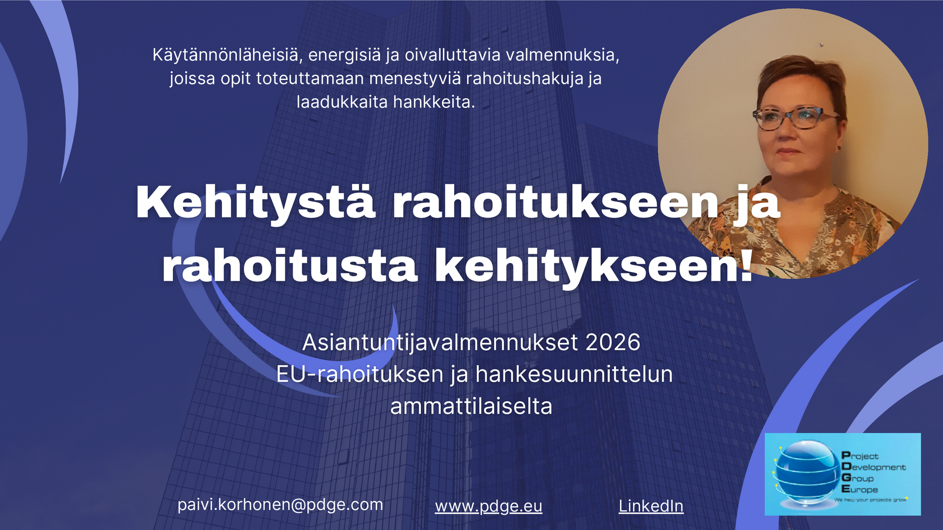 Projektin rahoitus, suunnittelu ja seuranta PDGE:n konsulttien avulla